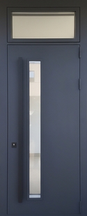 Уличная термодверь с фрамугой, стеклом, бугельной ручкой и темно-серой полимерной покраской объединяет в себе технологичность, стиль и практичность. Благодаря применению современных материалов дверь подходит для использования в жилых и коммерческих пространствах.